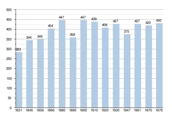 - Sources:INS, Rem:1831 jusqu'en 1970=recensements, 1976= nombre d'habitants au 31 décembre