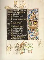 - Livre d'heures ms 836 de la bibliothèque municipale de Valenciennes (les zones réservées au texte sont sur fond noir, mais pas les bordures)
