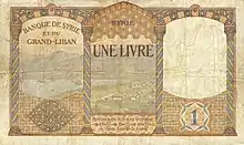 La livre fut émise en deux séries de pièces et de billets de même type à partir de 1924 dans les territoires de l'État du Grand Liban, l'État des Druzes et la Fédération syrienne, l'une des deux séries portant en tête le nom de « Grand Liban », l'autre le nom de « Syrie »[2], comme stipulé par une convention conclue le 23 janvier de la même année entre, d'une part, les représentants de ces États et de cette Fédération et, d'autre part, les représentants de la Banque de Syrie, « sous l'égide du Haut-Commissariat de la République française et avec l'approbation du ministère des Finances français[3] », et qui concédait le privilège exclusif de l'émission de la monnaie à la banque pour quinze années à compter du 1er avril[4]. Ces deux séries devaient circuler indifféremment sur les territoires signataires sans que le montant des billets en circulation pût dépasser 25 millions de livres[5].