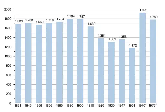 • Sources : INS, Rem. : 1831 jusqu'en 1970 = recensements, 1976 = nombre d'habitants au 31 décembre[2].