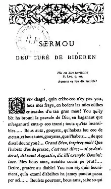 - Lou sermou deu Curè de Bideren (XVIIIe sègle) Pau : L. Ribaut, 1879
