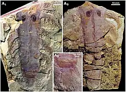 Fossile de Mureropodia apae, qui est peut-être en fait l'appendice frontal de Caryosyntrips (en) camurus.