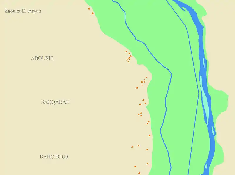 Cette liste, établi par le voyageur Karl Richard Lepsius en 1842, regroupe soixante-sept constructions (toutes ne sont pas des pyramides) dont la plus au nord se situe à Abou Rawash.