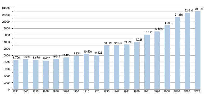 - Source : DGS - Remarque: 1831 jusqu'à 1981=recensement; depuis 1990=nombre d'habitants chaque 1er janvier[6]