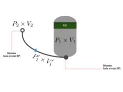 La loi de Boyle-Mariotte permet de déterminer l'autonomie d'une source de gaz en fonction du débit de consommation :