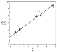En faisant varier la pression et en mesurant le débit dans une expérience, on obtient une série de points d'où l'on extrait l'ordonnée à l'origine et la pente (voir courbe).