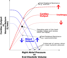 Selon la Loi de Frank-Starling (ou relation de Frank-Starling)[1], plus le volume télédiastolique d'un ventricule augmente, plus la force produite par ce dernier pour éjecter le sang sera grande. Elle prédit l'augmentation progressive de la force de contraction au fur et à mesure que le remplissage ventriculaire s'opère. Cependant, au-delà des conditions optimales de contraction du ventricule, la force de contraction va diminuer.