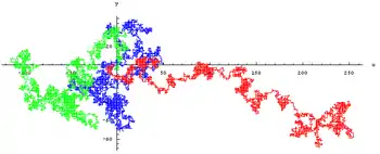 Notons Dn la distance entre la position d'un marcheur au hasard dans le plan, après n pas au hasard, et son point de départ : Dn/√n converge en loi vers la loi de Rayleigh, ce qui signifie qu'en parcourant une distance n, le marcheur ne s'éloigne vraiment de son point de départ que de √n pas approximativement, la convergence vers la loi de Rayleigh permettant de préciser cette approximation.