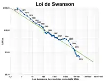 - (en) Cet article est partiellement ou en totalité issu de l’article de Wikipédia en anglais intitulé « Swanson's law » (voir la liste des auteurs).