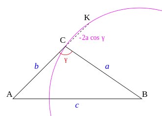 - ab |cos γ| est celle d'un parallélogramme de côtés a et b formant un angle π/2 – γ, le changement de signe de cos γ lorsque l'angle γ devient obtus rendant une étude par cas obligatoire.
