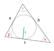 où p = a + b + c2 désigne le demi-périmètre et r le rayon du cercle inscrit.