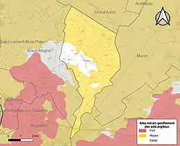 Le retrait-gonflement des sols argileux est susceptible d'engendrer des dommages importants aux bâtiments en cas d’alternance de périodes de sécheresse et de pluie. 83,7 % de la superficie communale est en aléa moyen ou fort (54,2 % au niveau départemental et 48,5 % au niveau national). Sur les 160 bâtiments dénombrés sur la commune en 2019, 27 sont en aléa moyen ou fort, soit 17 %, à comparer aux 57 % au niveau départemental et 54 % au niveau national. Une cartographie de l'exposition du territoire national au retrait gonflement des sols argileux est disponible sur le site du BRGM[13],[Carte 2].