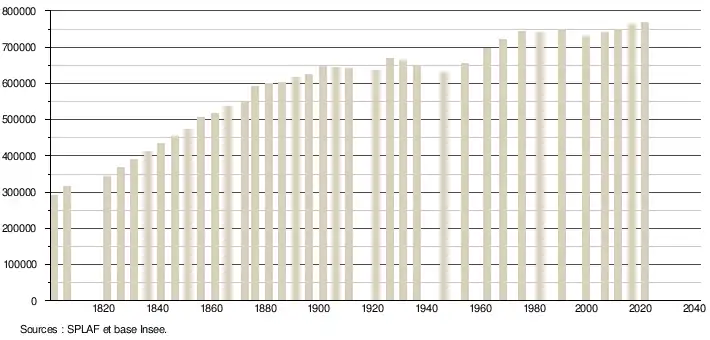 - Population municipale légale en vigueur au 1er janvier 2024, millésimée 2021, définie dans les limites territoriales en vigueur au 1er janvier 2023, date de référence statistique : 1er janvier 2021.