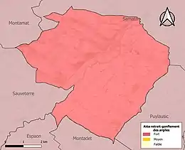 Le retrait-gonflement des sols argileux est susceptible d'engendrer des dommages importants aux bâtiments en cas d’alternance de périodes de sécheresse et de pluie. La totalité de la commune est en aléa moyen ou fort (94,5 % au niveau départemental et 48,5 % au niveau national). Sur les 1 077 bâtiments dénombrés sur la commune en 2019, 1 077 sont en aléa moyen ou fort, soit 100 %, à comparer aux 93 % au niveau départemental et 54 % au niveau national. Une cartographie de l'exposition du territoire national au retrait gonflement des sols argileux est disponible sur le site du BRGM[24],[Carte 3].