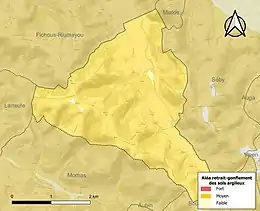 Le retrait-gonflement des sols argileux est susceptible d'engendrer des dommages importants aux bâtiments en cas d’alternance de périodes de sécheresse et de pluie[27]. 99,5 % de la superficie communale est en aléa moyen ou fort (59 % au niveau départemental et 48,5 % au niveau national)[Carte 3]. Depuis le , en application de la loi ELAN, différentes contraintes s'imposent aux vendeurs, maîtres d'ouvrages ou constructeurs de biens situés dans une zone classée en aléa moyen ou fort[Note 5],[28].
