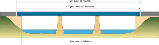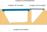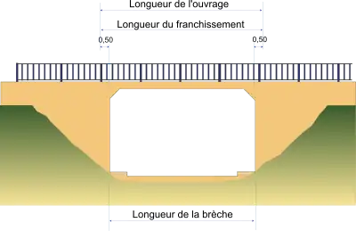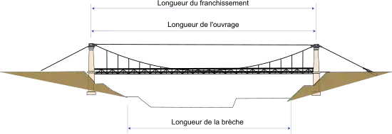 - La longueur de la brèche est la longueur minimale du franchissement à reconstruire, résultant de la largeur de l’obstacle à franchir.