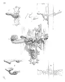- Loqueteau à panache - Platine de celui-ci est découpée d'une feuille de plus que le précédent - Il en est de blanchis, et d'autres qui sont polis[S 1].