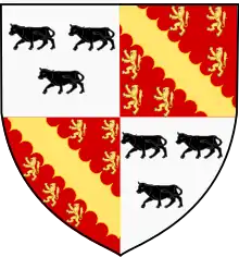 Écu des comtes de Shaftesbury. Les taureaux sont d'Ashley ; la bande échancrée et les lions, de Cooper. La devise est Love, Serve (Aimez, servez).