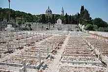 Vue sur la place des Galli avec campanile et coupole de la Basilique, Fin XIXe siècle-début XXe siècle