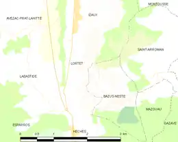 Lortet est limitrophe de six autres communes, dont Avezac-Prat-Lahitte au nord-ouest par un simple quadripoint.