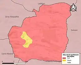Le retrait-gonflement des sols argileux est susceptible d'engendrer des dommages importants aux bâtiments en cas d’alternance de périodes de sécheresse et de pluie. La totalité de la commune est en aléa moyen ou fort (94,5 % au niveau départemental et 48,5 % au niveau national). Sur les 82 bâtiments dénombrés sur la commune en 2019, 82 sont en aléa moyen ou fort, soit 100 %, à comparer aux 93 % au niveau départemental et 54 % au niveau national. Une cartographie de l'exposition du territoire national au retrait gonflement des sols argileux est disponible sur le site du BRGM[21],[Carte 3].