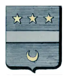 D'azur, à la fasce accompagnée en chef de trois étoiles et, en pointe, d'un croissant, le tout d'argent[9] |