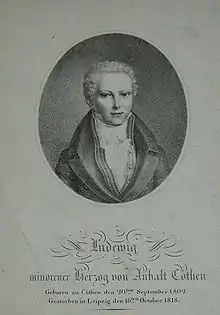- Louis-Auguste d'Anhalt-Köthen (1802-1818), prince allemand, duc d'Anhalt-Köthen (1812-1818) ;