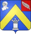 D'azur au chevron d'or accompagné en chef de deux heaumes d'argent et en pointe d'un vase fumigatoire du même. Champagne cousue de gueules du tiers de l'écu chargée du signe des chevaliers légionnaires.[12] |