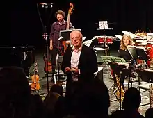 - Spektakel (1970) pour improvisational ensemble d'improvisation (saxophone [+ clarinette basse], alto, guitare basse, orgue électronique [+ piano], percussion [ou d'autres instruments]), petit orchestre (12 bois, 4 cors, 6 percussions)