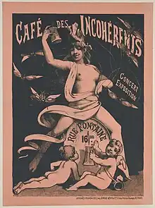 " ...(...) Une des nouvelles attractions parisiennes, c'est le Café-Concert des Incohérents que viennent de fonder MM. Cohl et Marx. Rien de plus Incohérent que la galerie de tableaux qui orne la salle et une troupe d'artiste de choix constitue un spectacle des plus agréables" .