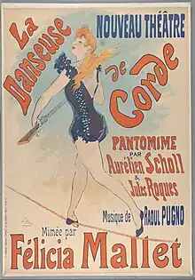 Le 7 février 1892, [28]Louis Ganne chef d'orchestre au Nouveau Théâtre ( Théâtre de Paris ) dirige le ballet-pantomime La Danseuse de Corde, livret en 3 actes de MM. Aurélien Scholl et Jules Roques sur une musique du compositeur Raoul Pugno. Après Scaramouche, de nombreux journaux ou revues musicales soulignèrent le grand succès que remporta ce nouveau spectacle chorégraphique et lyrique donné au Nouveau-Théâtre. Le musicien Raoul Pugno qui tint chaque soir le piano, fit également sensation. Quant à l'orchestre de M. Ganne, il se montra brillamment à la hauteur du maître et fut salué unanimement par la presse nationale , si bien que le très savant Monde illustré releva entre autre :