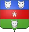 Tiercé en fasce, d'azur à deux rencontres de loup d'argent, de gueules au signe des chevaliers, et de sinople à une tête de loup d'argent en rencontre[7]. |