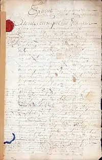 - Protestation par Louis Lepage, sieur de Sainte-Claire, prêtre et seigneur, à l'effet que Lyon de Saint-Ferréol, prêtre du Séminaire de Québec, lui défend d'enlever le bois de l'île-Jésus, servant à la construction de vaisseaux royaux ( au )