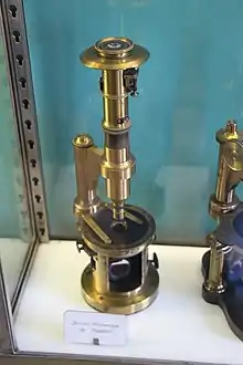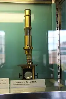 Pasteur « dispose d'une première orientation donnée par Cagniard de Latour ; il la développe et montre que c'est en tant qu'être vivant que la levure agit, et non en tant que matière organique en décomposition »[64]. Ces travaux bénéficient de la mise au point des premiers objectifs achromatiques dépourvus d'irisation parasite[65]. De 1857[66] à 1867, il publie des études sur les fermentations. Inaugurant la méthode des cultures pures[67], il établit que certaines fermentations (lactique, butyrique[68]) où on n'avait pas aperçu de substance jouant un rôle analogue à celui de la levure[69] (ce qui avait servi d'argument à Liebig[70]) sont bel et bien l'œuvre d'organismes vivants[71].