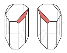 Dans les travaux que Pasteur a réalisés au début de sa carrière scientifique en tant que chimiste, il résolut en 1848[39] un problème qui allait par la suite se révéler d'importance capitale dans le développement de la chimie contemporaine : la séparation des deux formes de l'acide tartrique. Le seul acide tartrique que l'on connaissait à l'époque était un sous-produit classique de la vinification, utilisé dans la teinturerie. Parfois, au lieu de l'acide tartrique attendu, on obtenait un autre acide, qu'on appela acide racémique puis acide paratartrique[40]. Une solution de l'acide tartrique, comme de chacun de ses sels (tartrates), tournait le plan de la lumière polarisée la traversant, alors qu'une solution de l'acide paratartrique, comme de chacun de ses sels (paratartrates), ne causait pas cet effet, bien que les deux composés aient la même formule brute. En 1844, Mitscherlich[41] avait affirmé que, parmi les couples tartrate / paratartrate, il y en avait un, à savoir le couple « tartrate double de soude et d'ammoniaque » / « paratartrate double de soude et d'ammoniaque », où le tartrate et le paratartrate n'étaient discernables que par la propriété rotatoire, présente dans le tartrate et absente dans le paratartrate (« tartrate double[42] de soude et d'ammoniaque » était la façon dont on désignait à l'époque le tartrate — base conjuguée de l'acide tartrique — de sodium et d'ammonium). En particulier, ce tartrate et ce paratartrate avaient, selon Mitscherlich, la même forme cristalline. Pasteur eut peine à croire « que deux substances fussent aussi semblables sans être tout à fait identiques »[43]. Il refit les observations de Mitscherlich et s'avisa d'un détail que Mitscherlich n'avait pas remarqué : dans le tartrate en question, les cristaux présentent une dissymétrie (« hémiédrie »), toujours orientée de la même façon ; en revanche, dans le paratartrate correspondant, il coexiste deux formes de cristaux, images spéculaires non superposables l'une de l'autre, et dont l'une est identique à celle du tartrate. Il sépara manuellement les deux sortes de cristaux du paratartrate, en fit deux solutions et observa un effet de rotation du plan de polarisation de la lumière, dans un sens opposé pour les deux échantillons. La déviation du plan de polarisation par les solutions étant considérée, depuis les travaux de Biot, comme liée à la structure de la molécule[44], Pasteur conjectura[45] que la dissymétrie de la forme cristalline correspondait à une dissymétrie interne de la molécule, et que la molécule en question pouvait exister en deux formes dissymétriques inverses l'une de l'autre[46]. C'était la première apparition de la notion de chiralité des molécules[47]. Depuis les travaux de Pasteur, l'acide racémique ou paratartrique est considéré comme composé d'un acide tartrique droit (l'acide tartrique connu antérieurement) et d'un acide tartrique gauche[48].