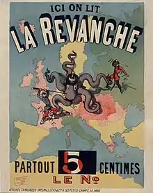 Désormais doté de bureaux situés au no 3 de la place de l'Opéra, il est rebaptisé La Revanche. Ce nouveau titre est explicite car son rédacteur en chef, devenu propriétaire du journal en grâce à un prêt accordé par son frère[3], y développe un revanchisme (en faveur d'une reconquête militaire de l'Alsace-Lorraine) et un antigermanisme tapageur. Le bandeau contient les armoiries des deux provinces perdues ainsi que la devise : « Gaulois point ne renonce »[17]. Pour assurer la publicité de la Revanche, Peyramont engage des hommes-sandwich portant chacun une grande caricature représentant l'Europe menacée par l'Allemagne, celle-ci étant figurée sous la forme d'une pieuvre coiffée d'un casque à pointe, combattue par la France et la Russie. Craignant le trouble à l'ordre public, le préfet de police fait confisquer ces « placards »[18].