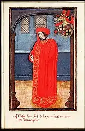 Un autre manuscrit, La Pénitence d'Adam, de 1472, lui a été dédié par Colard Mansion, célèbre scribe, puis imprimeur brugeois[23].