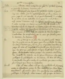 « Je ne suis point jolie, je ne suis cependant pas laide. Je suis petite, maigre, très bien faite. J'ai l'air jeune, sans fraicheur, noble, doux, vif, spirituel et intéressant. Mon imagination est tranquille, mon esprit est lent, juste, réfléchi et sans suite. J'ai dans l'âme de la vivacité, du courage, de la fermeté, de l'élévation et une excessive timidité. [...] Je suis très ignorante; toute mon éducation s'est bornée à cultiver des talents agréables et à me rendre habile dans l'art de faire des sophismes[17]. »