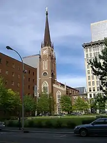 En 2008, la ville totalise neuf gratte-ciel dont la hauteur dépasse les 100 m. Le plus grand, nommé AEGON Center, atteint 167 m de hauteur[22]. Ce gratte-ciel qui tient le haut du classement depuis 1993 aurait perdu son titre en 2010 si le projet de construction du Museum Plaza n'avait pas été abandonné. Ce dernier aurait dû culminer à 212 m. La plupart de ces immeubles sont situés dans le quartier des affaires de Downtown Louisville. Ce quartier, à l'emplacement originel de la ville de Louisville, est le plus grand quartier des affaires de l'État du Kentucky. Après un certain exode de la population consécutif à la Seconde Guerre mondiale, le quartier a connu un renouveau depuis les années 1970. Il fut longtemps considéré comme un lieu de travail et non un lieu de résidence. Depuis les années 2000, de nombreux commerces et bâtiments résidentiels sont réapparus dans le quartier en vue d'y faire revenir la population. La construction du stade de baseball Louisville Slugger Field et du parc Waterfront en 1998 participa à son renouveau. En 2007, le Fourth Street Live! fut achevé. Le Muhammad Ali Center et le Kentucky Center sont quelques preuves du renouveau culturel du quartier. Les bâtiments de West Main Street ont une architecture originale avec des façades décorées en fonte[23].