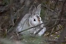 Les lièvres d'Amérique, troisième animal le plus consommé par les loups, constituent une très petite partie de leur régime alimentaire, car ils sont difficiles à attraper. Les chercheurs ont découvert que les loups ne montrent pas beaucoup d'intérêt à s'attaquer aux lagomorphes et ne s'en nourrissent qu'incidemment[14]. Les lièvres ont un effet négatif sur l'orignal en consommant la même végétation que lui, ce qui diminue la part de fourrage pour l'orignal[39]. Le renard roux est un autre animal qui habite l'Isle Royale. Il se nourrit principalement de lièvres et occasionnellement d'orignaux ou de toute autre viande qu'un loup laisse derrière lui. Les loups ne chassent généralement pas les renards, bien qu'ils aient été observés en train d'en tuer lorsqu'ils tentent de se nourrir d'une carcasse d'animal[14].