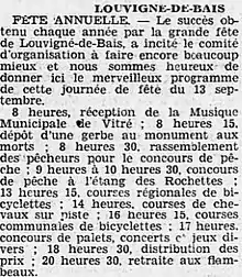 - Journal L'Ouest-Éclair no 14918 du 13 septembre 1937, consultable https://gallica.bnf.fr/ark:/12148/bpt6k661013d/f9.image.r=Louvign%C3%A9-de-bais?rk=236052;4