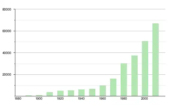 | 1950 | 6 773 | ▲ +10,22 % | |