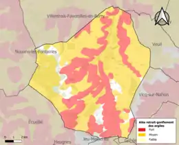 Le retrait-gonflement des sols argileux est susceptible d'engendrer des dommages importants aux bâtiments en cas d’alternance de périodes de sécheresse et de pluie. 92,1 % de la superficie communale est en aléa moyen ou fort (84,7 % au niveau départemental et 48,5 % au niveau national). Sur les 918 bâtiments dénombrés sur la commune en 2019, 908 sont en aléa moyen ou fort, soit 99 %, à comparer aux 86 % au niveau départemental et 54 % au niveau national. Une cartographie de l'exposition du territoire national au retrait gonflement des sols argileux est disponible sur le site du BRGM[24],[25].