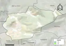 L'occupation des sols de la commune, telle qu'elle ressort de la base de données européenne d’occupation biophysique des sols Corine Land Cover (CLC), est marquée par l'importance des forêts et milieux semi-naturels (59,3 % en 2018), une proportion identique à celle de 1990 (58,6 %). La répartition détaillée en 2018 est la suivante : milieux à végétation arbustive et/ou herbacée (29 %), forêts (28,2 %), zones agricoles hétérogènes (22,5 %), cultures permanentes (18,2 %), espaces ouverts, sans ou avec peu de végétation (2,1 %)[19]. L'évolution de l’occupation des sols de la commune et de ses infrastructures peut être observée sur les différentes représentations cartographiques du territoire : la carte de Cassini (XVIIIe siècle), la carte d'état-major (1820-1866) et les cartes ou photos aériennes de l'IGN pour la période actuelle (1950 à aujourd'hui)[Carte 2].