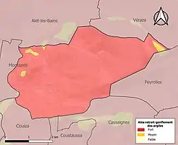 Le retrait-gonflement des sols argileux est susceptible d'engendrer des dommages importants aux bâtiments en cas d’alternance de périodes de sécheresse et de pluie. La totalité de la commune est en aléa moyen ou fort (75,2 % au niveau départemental et 48,5 % au niveau national). Sur les 142 bâtiments dénombrés sur la commune en 2019, 142 sont en aléa moyen ou fort, soit 100 %, à comparer aux 94 % au niveau départemental et 54 % au niveau national. Une cartographie de l'exposition du territoire national au retrait gonflement des sols argileux est disponible sur le site du BRGM[22],[Carte 3].