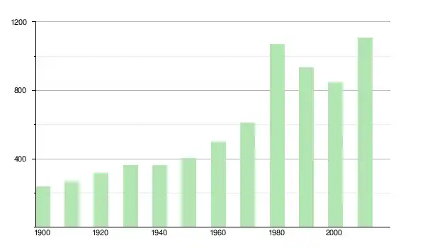 | 1930 | 363 | ▲ +14,87 % | |