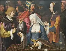 - l'art de Quentin Metsys pour la réalisation des scènes de genre, comme en témoignent les réalisations postérieures de Lucas, Les Joueurs de cartes et Les Joueurs d'échec ;