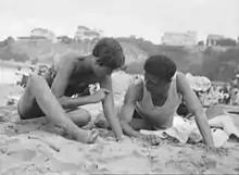 (consulté le ) - « Tenue de sport Lucien Lelong - robe, gilet sans manches et foulard clairs avec rehauts foncés - , modèle de 3/4 face, par Egidio Scaioni »