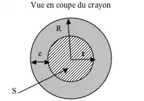 avec V : le volume intérieur (« vide ») du crayon