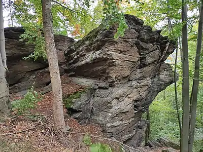 Cette formation rocheuse en grès est située sur les pentes de la montagne Pytlácké kameny (1 027 m), au-dessus de la rive gauche de la rivière Bílá Opava.